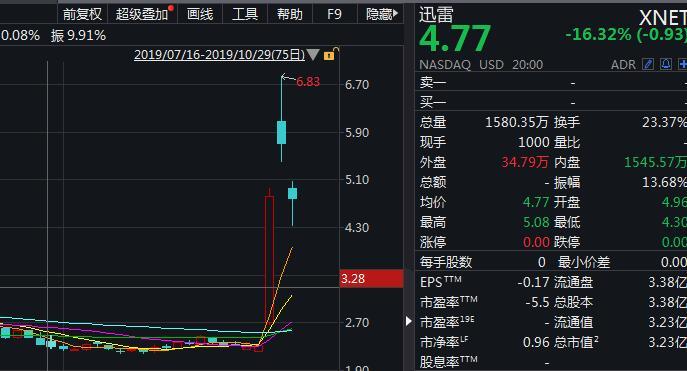 前一日晚间,美股上市的迅雷在经过单日翻倍的惯性冲高后,也出现了一波16.32%的下跌。至此,已经吃掉了28日的所有涨幅,不过翻倍日的胜利果实仍然存在。