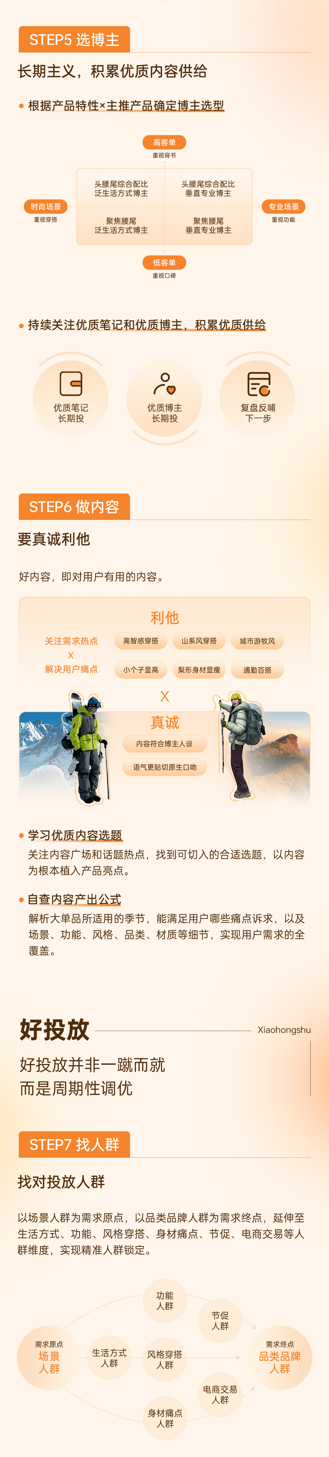 基于此,小红书凝练出「运动户外行业种收增长攻略」,围绕“选产品—做内容—好投放”的核心逻辑,系统拆解如何选对品、找对人、说对话,为品牌提供从种草到转化的可持续路径,助力品牌在场景消费时代,精准触达目标人群,实现全域持续增长。